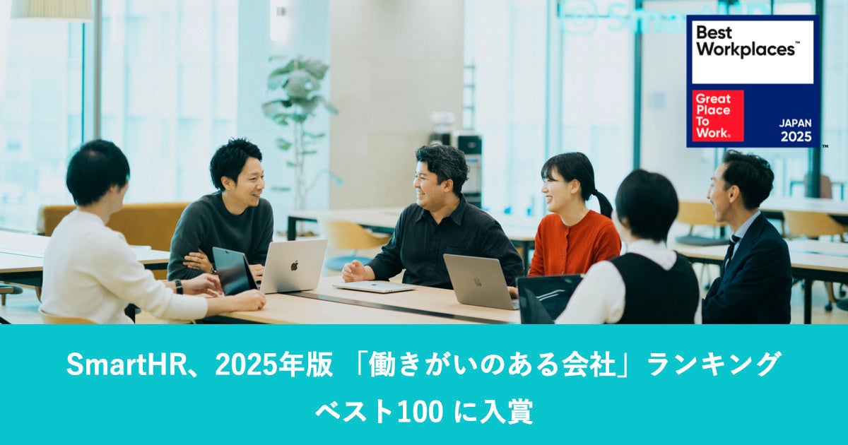 SmartHRが2025年版 日本における「働きがいのある会社」ランキングにてベスト100に入賞