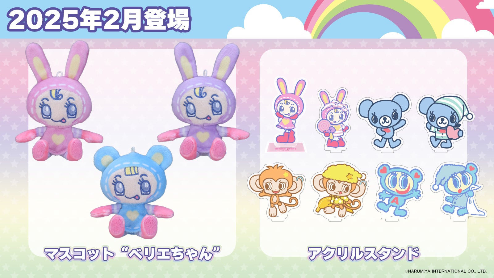 株式会社ナルミヤ・インターナショナル(本社:東京都港区芝公園、代表取締役執行役員社長:國京 紘宇)が展開するオリジナルブランド「エンジェルブルー」ナカムラくん、 「メゾ ピアノ」ベリエちゃん「ポンポネット」ミントくん、 「デイジーラヴァーズ」のルッキーのぬいぐるみ・マスコット・アクリルスタンドなどが登場予定です。