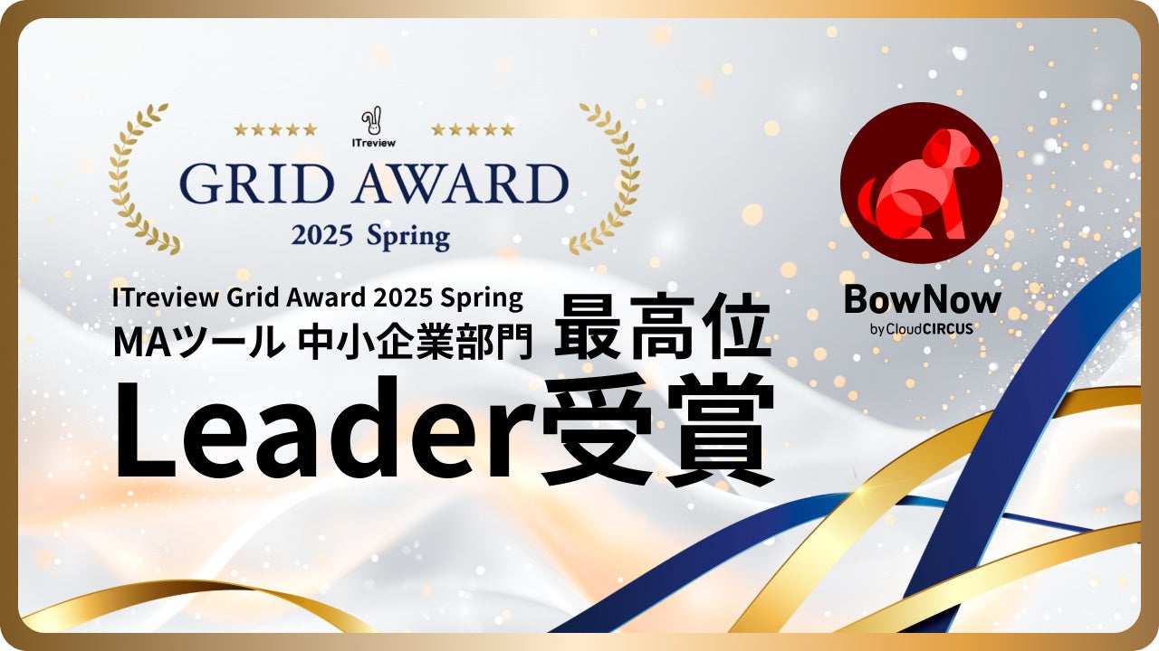 スターティアホールディングス株式会社(本社:東京都、代表取締役: 本郷秀之、証券コード:3393)は、連結子会社のデジタルマーケティング事業を手掛けるクラウドサーカス株式会社(本社:東京都、代表取締役社長:金井章浩)が提供するMA(マーケティングオートメーション)ツール『BowNow(バウナウ)』において、アイティクラウド株式会社(本社:東京都、代表取締役社長:黒野源太)が主催する「ITreview Grid Award 2025 Spring」にて、MA(マーケティングオートメーション) - 中小企業部門 で、ユーザーから高い評価を得た製品に贈られる最高位の称号「Leader」を初めて受賞したことをお知らせいたします。