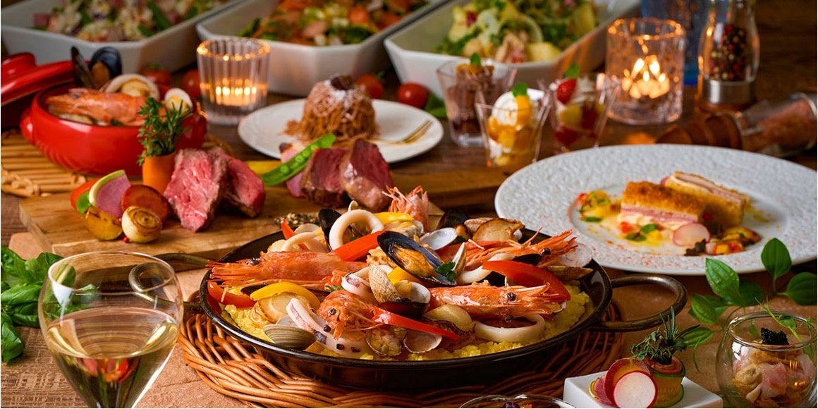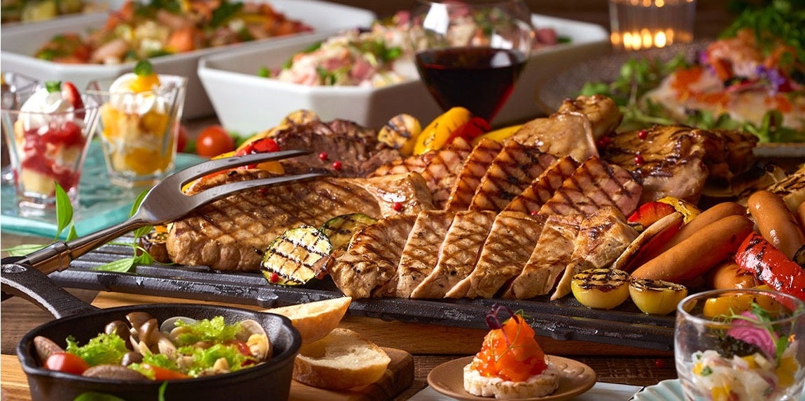 ライブキッチンをレストラン入り口付近に設置。目の前で切り分けられるローストビーフなど、一歩足を踏み入れた瞬間から美味しい時間への期待が高まる光景が目に飛び込むレイアウトにご期待ください。
