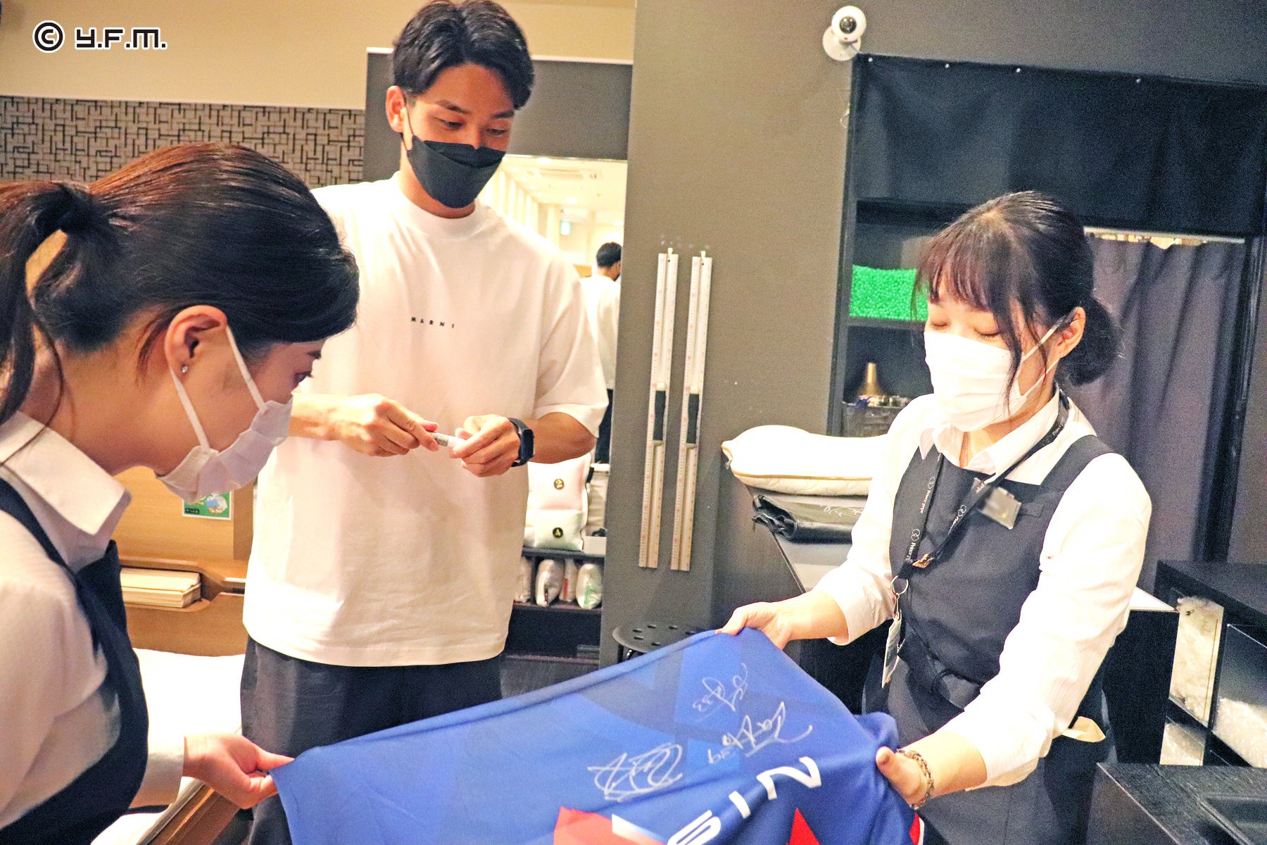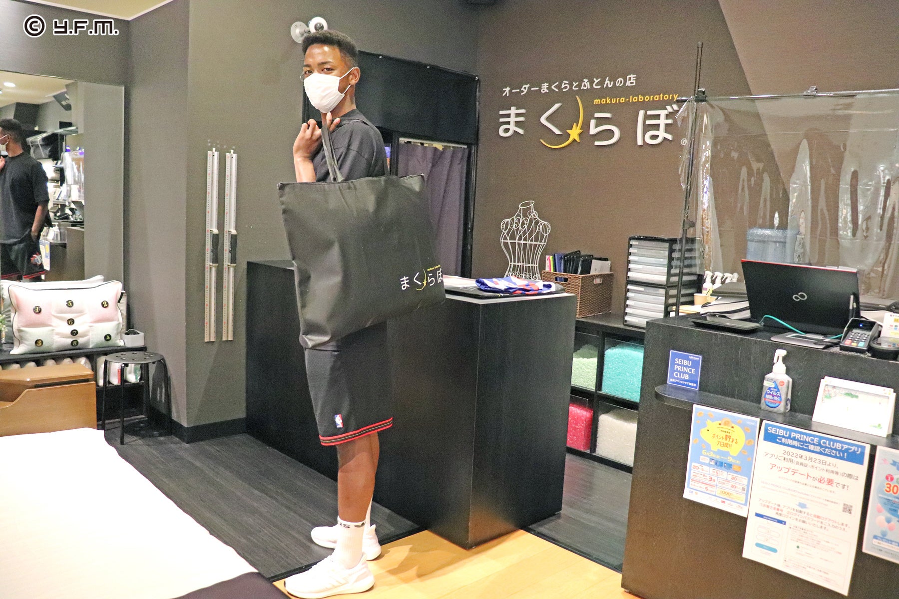 今まで枕を特に意識したことがなかった選手も、仰向きはもちろん横向きでも背骨が真っすぐ、かつ、肩が巻き込まれない仕様に「なるほど!」と納得されていました。他にも、練習や試合後でアドレナリンが全開のときなど、なかなか寝付けないときの対処方法を枕マイスターからアドバイスを受け、熱心に聞き入っていました。来店された選手たちは、睡眠で得られるリカバリーに期待を寄せており、私たちも彼らの更なる活躍を応援しています。