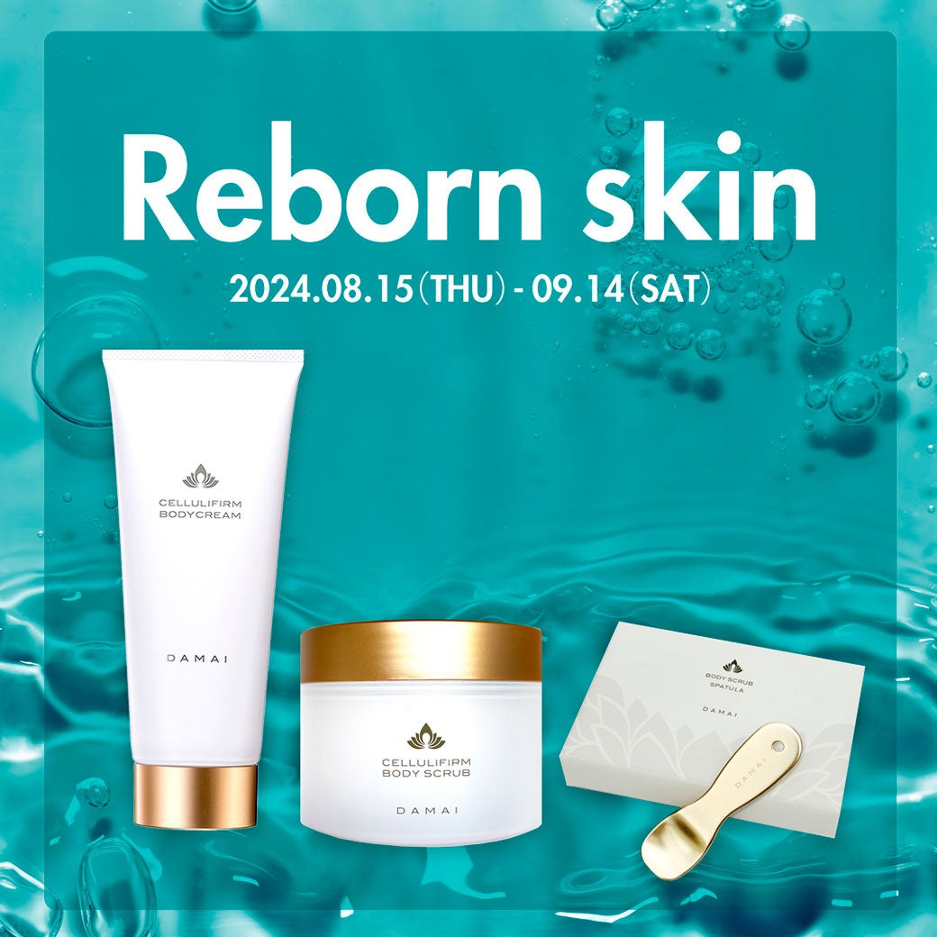 株式会社シティコミュニケーションズ(本社 :横浜市神奈川区 代表取締役社⻑:三田 大明)が運営する代官山のスパ 「SPA DAMAI(以下、「ダマイ」)」 は、8月15日から9月14日の期間、ダマイ公式オンラインストアにて、ボディメイク製品として人気のセット「ダマイ セルリファーム ボディクリーム」と「ダマイ セルリファーム ボディスクラブ」がお得な価格で手に入る『Reborn Skin』キャンペーンを実施いたします。まずはお肌の土台をボディスクラブで磨き整え、アフターケアではスパ仕様のリッチな成分と香りのボディクリームで癒されながらの保湿を。加齢などの原因によりお肌に蓄積されていく紫外線ダメージへの対策として、おすすめのセットです。
