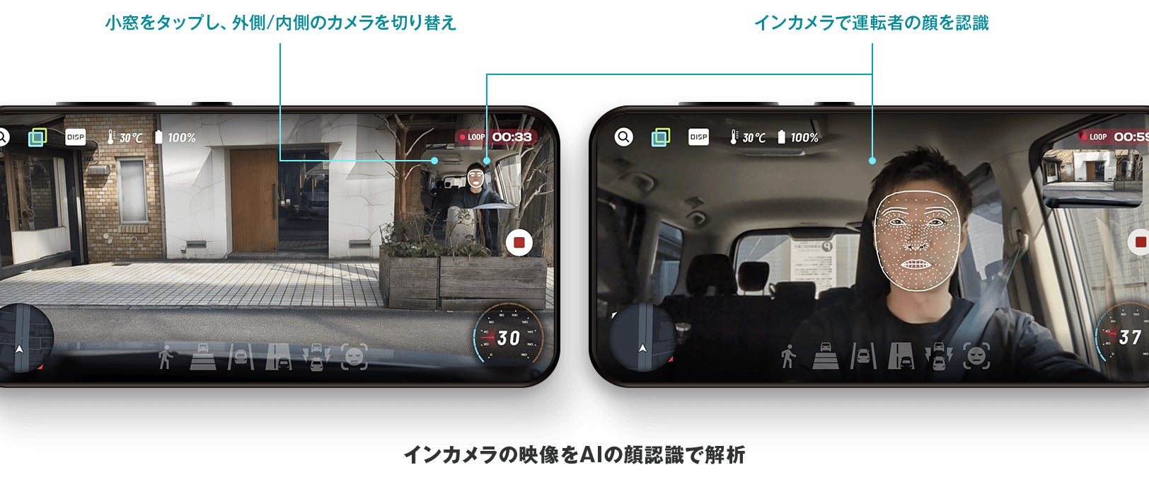 AIとAR搭載のドライブレコーダーアプリ 『AiRCAM』、AIによる顔認識で、わき見・居眠り運転を知らせる機能を提供開始
