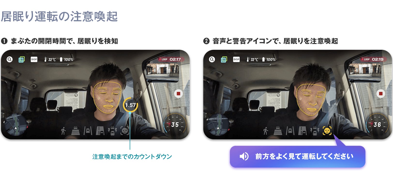 ~スマートフォンのインカメラを利用し、まぶたや顔の傾きを検知。リアルタイムに注意喚起して事故防止に貢献~