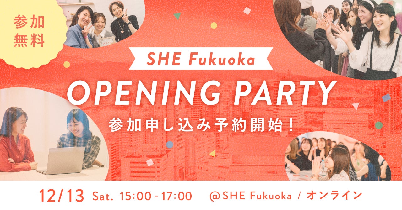 「SHE Fukuoka」オープニングパーティーの開催が12月13日(土)に決定!参加申し込みが本日よりスタート