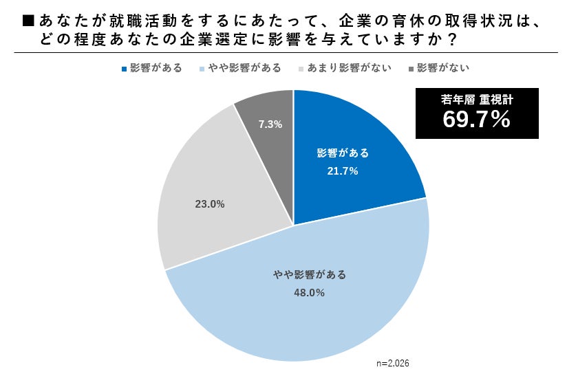 ●就職活動においてどのような企業を選定するかにおいても、69.7%が「育休取得実績」を重視していると回答。「男性の育休取得実績がない企業」に対しては、61.0%が「就職したくない」と回答し、就職活動において「男性の育休取得実績」を重視していることが伺えた