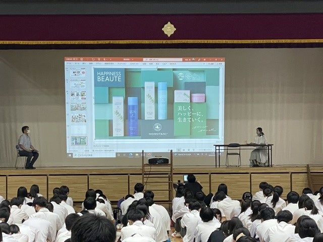 創業137年の化粧品メーカー「桃谷順天館」(代表取締役社長 桃谷誠一郎、大阪市中央区)は、7月19日(火)に開催された東京都立豊島高等学校(以下豊島高校)「第5回豊島セミナー」に当社研究員が登壇し、1、2学年の在校生徒約600名に向けてトークショーを実施いたしました。