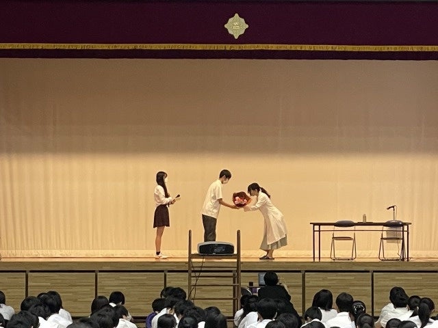 最後には生徒代表の方からお礼の言葉と花束のプレゼントをいただきました。生徒の皆様も楽しんでいただけたようで大きな拍手もいただきました。