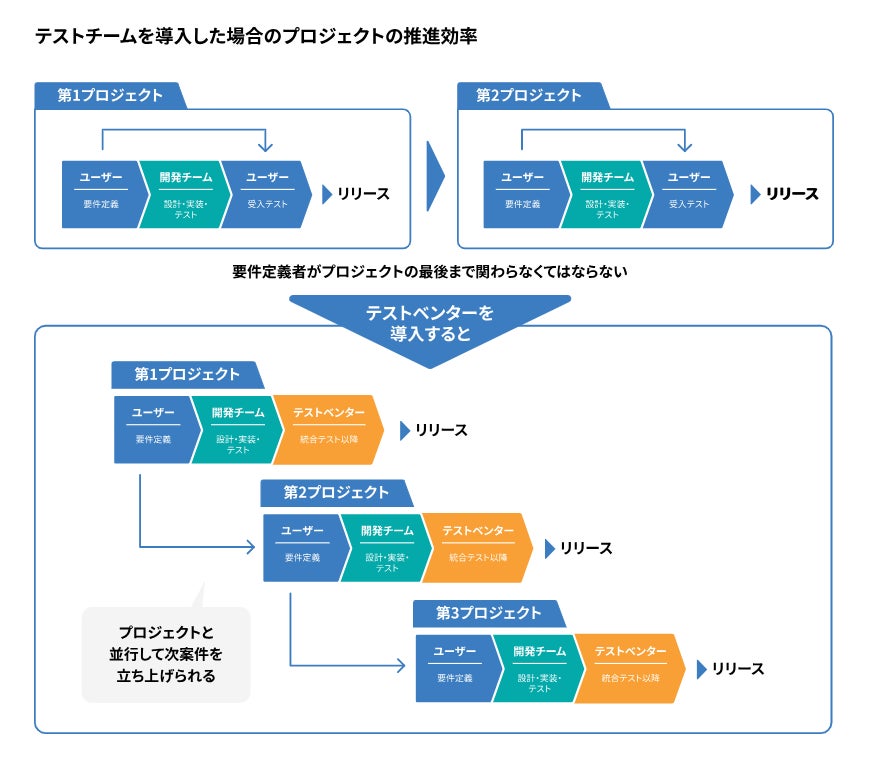 開発チームとテストチームの分業によりプロジェクトを効率的に推進