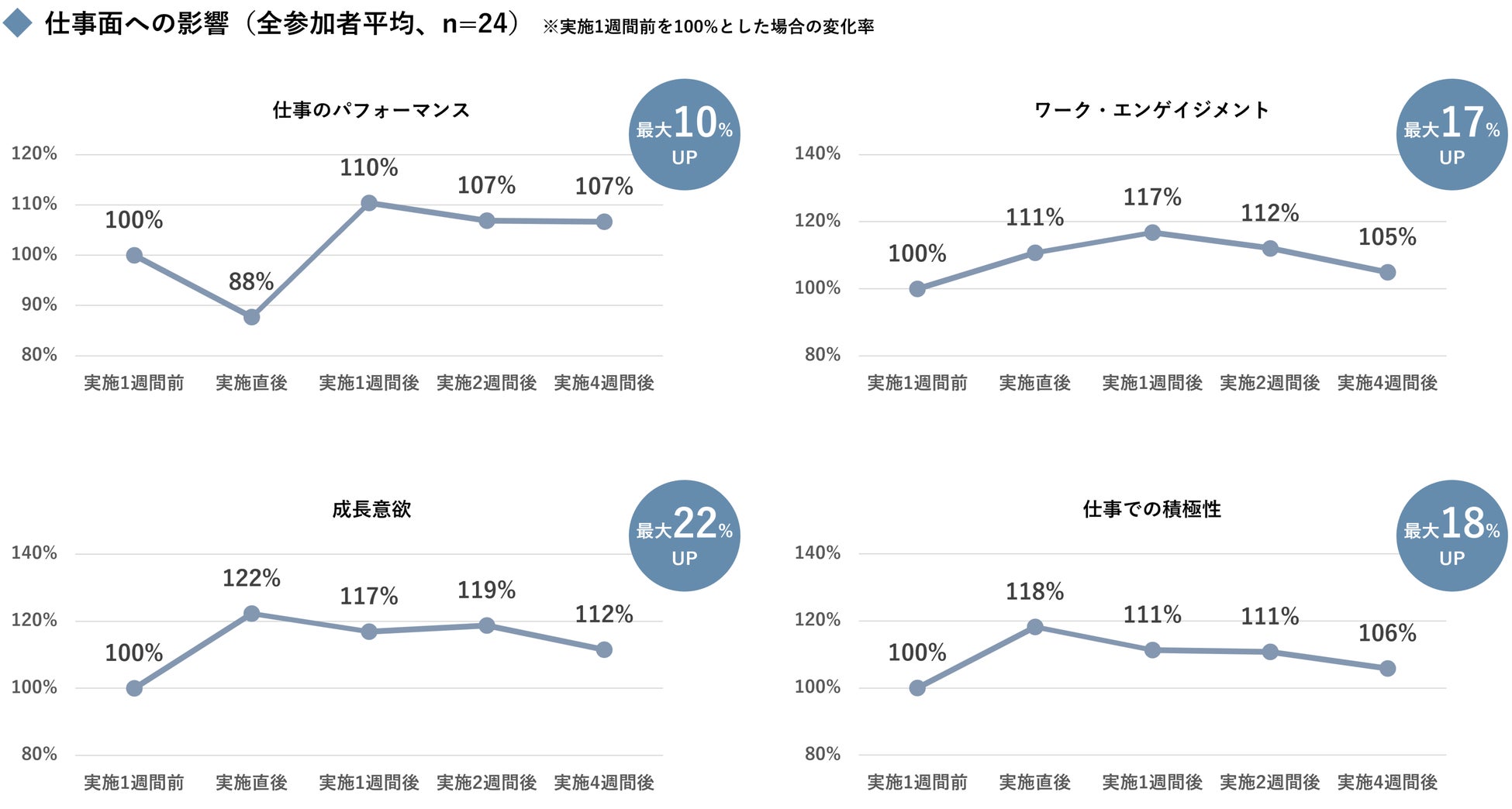 ・ワーカーにとって、定期的にこのような機会を持つことは、仕事とウェルビーイングの両面でエネルギーを充電する機会となり、定期的に取り入れた働き方は企業に有益性をもたらす可能性が十分あることを、本検証結果は示しました。