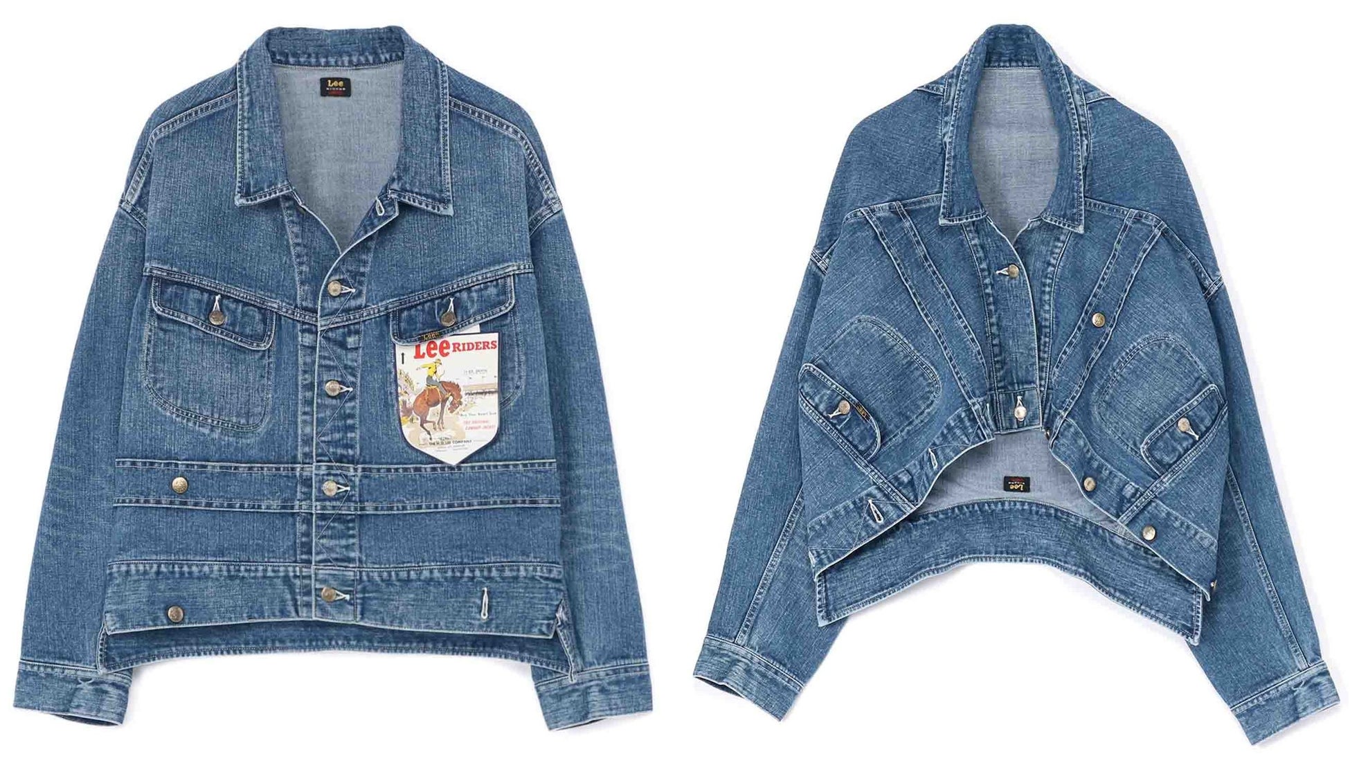 前後で着装が可能な2WAY仕様のジャケット。前身頃はLeeのカウボーイにフォーカスしたマスターピースのデニムジャケット「101-J」を、後身頃には直線が際立つワークウエア調の切り替えを配したジャケットの2デザインを組み合わせている。