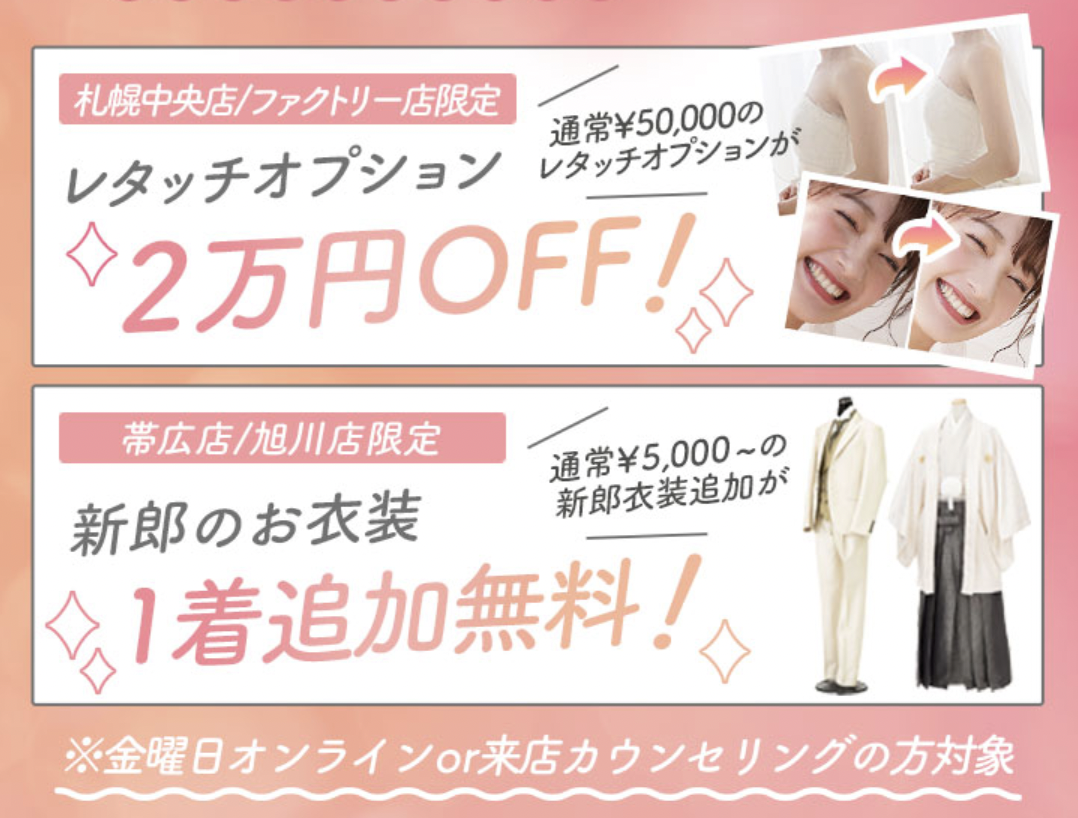 写真工房ぱれっと(本社/有限会社 三景スタジオ)では、毎週金曜日のご来店orオンライン相談で特別な特典がつく「BIG FRIDAY」キャンペーンを実施いたします!