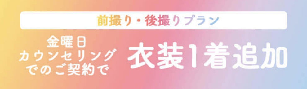 通常プランでは2着の衣装を着られますが、こちらの特典で3着目が無料に!