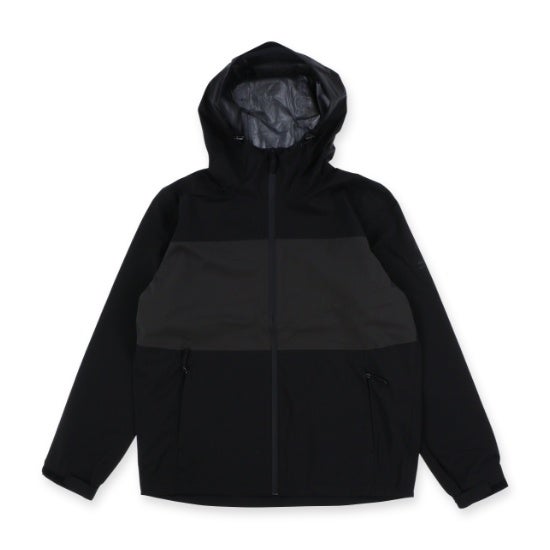 表地はソフトな風合いでストレッチ性のあるSOLOTEX®︎生地に、耐水圧10,000mm、透湿度10,000g/㎡/24hの防水透湿素材を使用、フルシーム加工で雨の浸入を防ぎます。