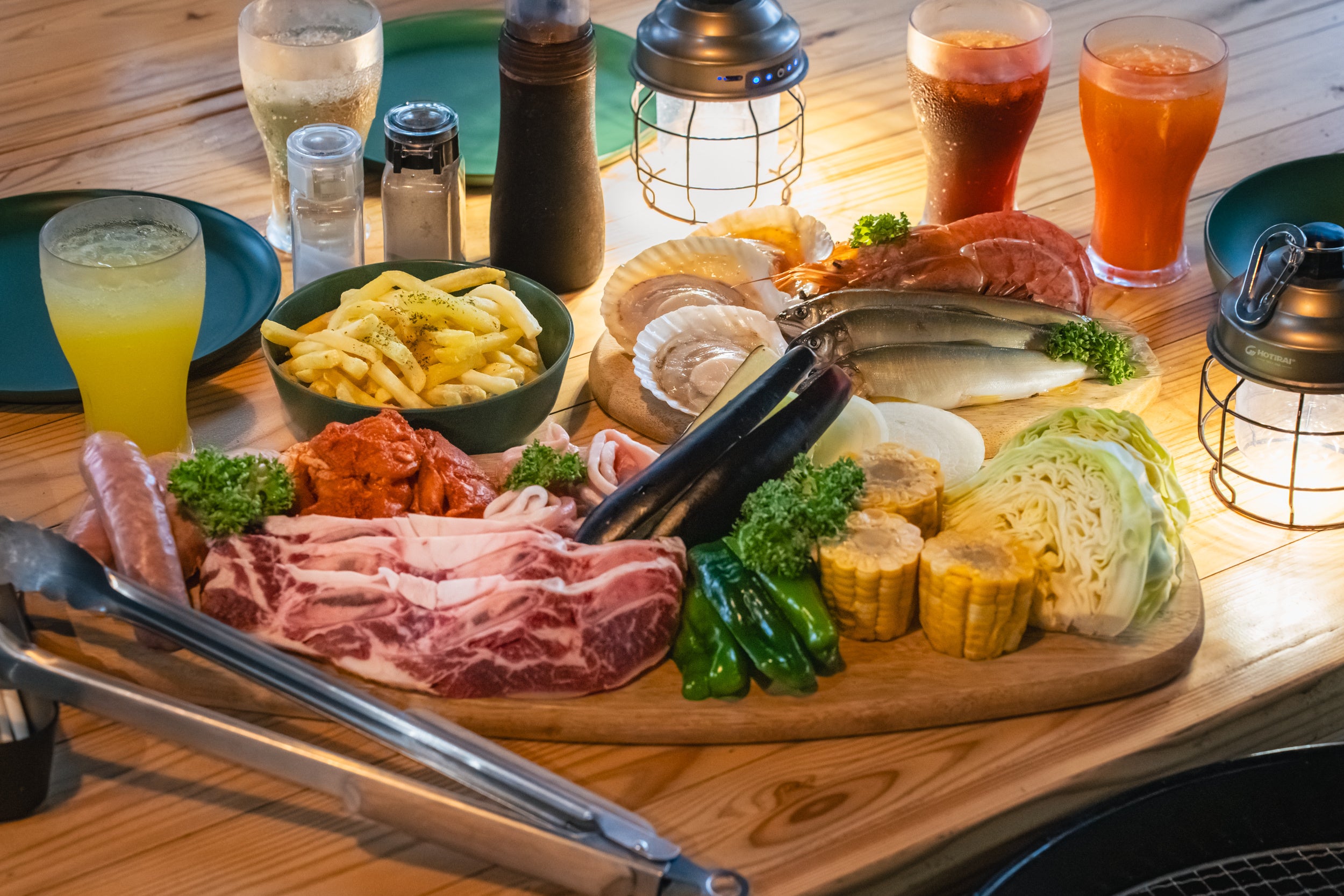 手ぶらコースはウッドデザインパーク与位がこだわった贅沢なBBQ食材をお楽しみいただけます。