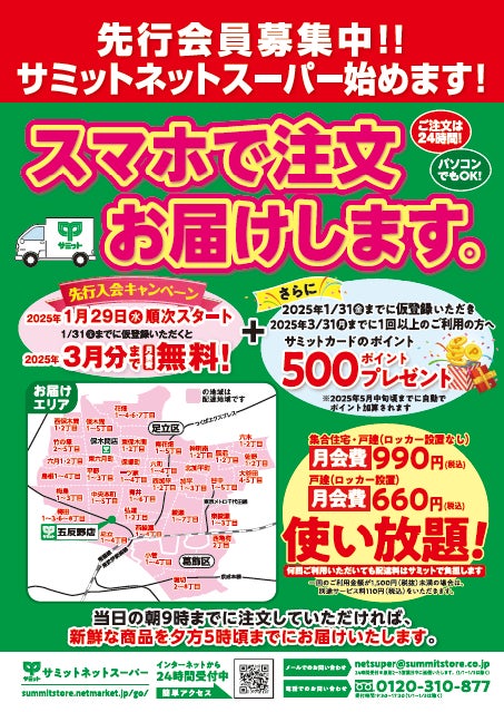 サミットストア五反野店は、2025年1月29日(水)より、「サミットネットスーパー」を開始します。