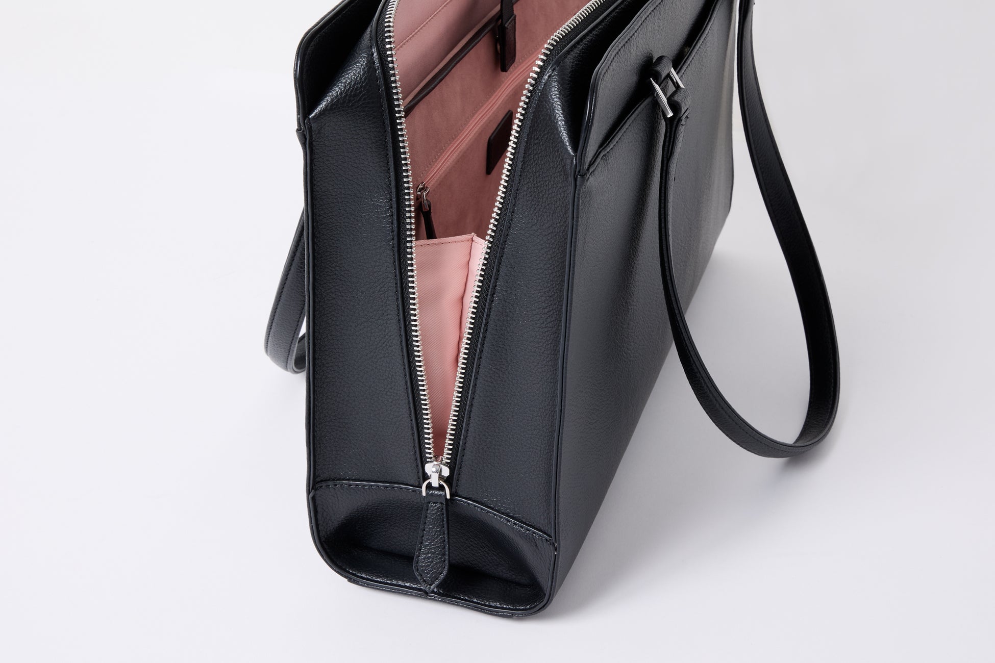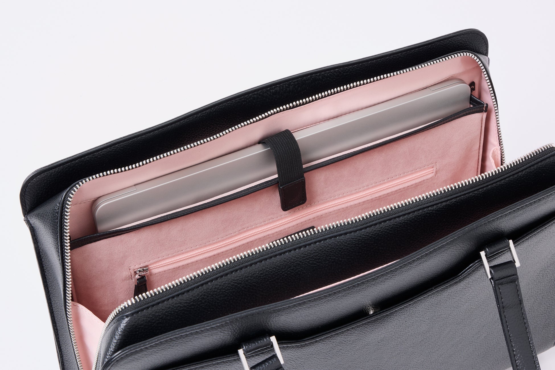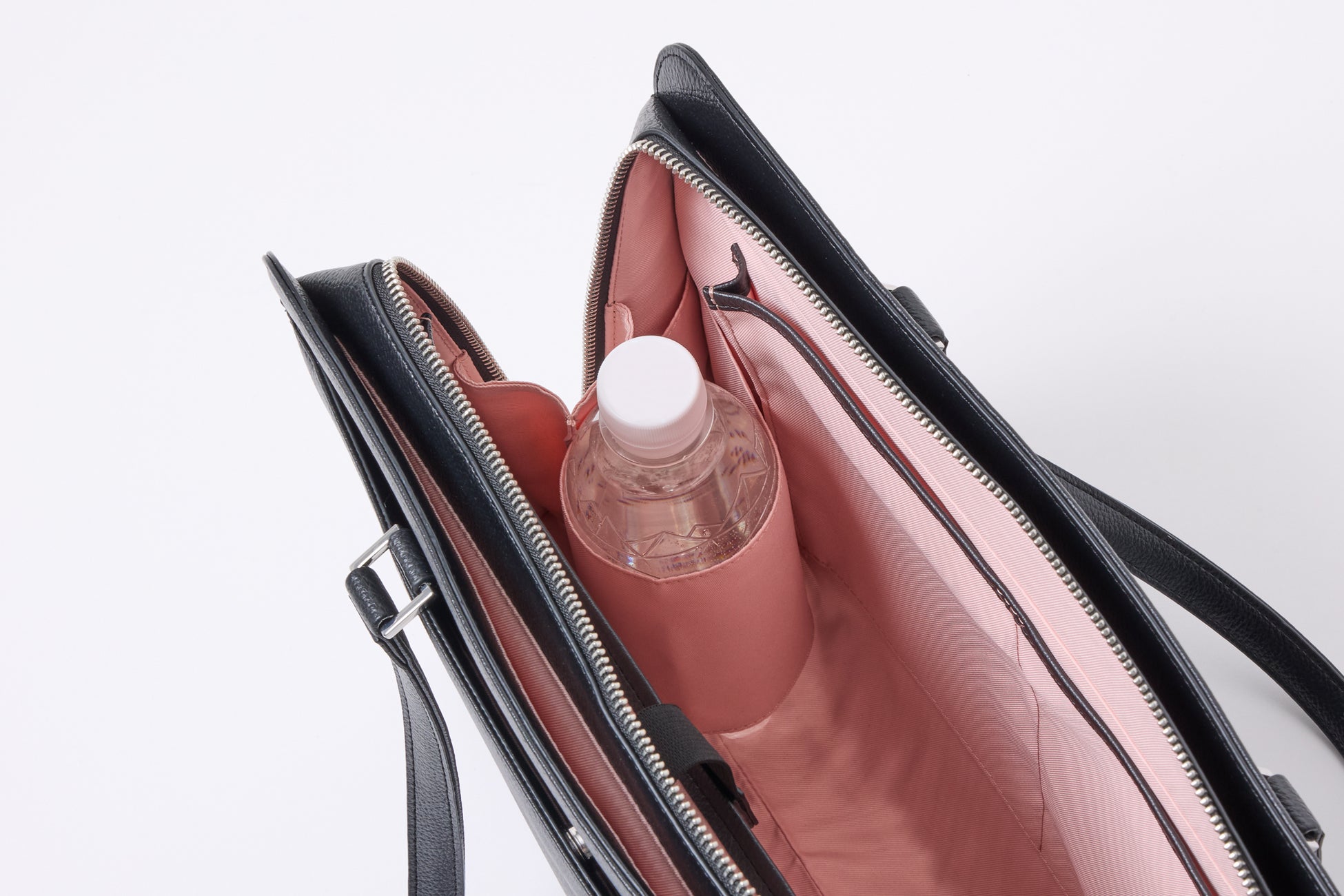 こんな機能があったら嬉しい!といったお客様からのお声をキャッチし、デザインはもちろん、機能面にも重視したバッグ。各アイテムを収納することを想定してデザインされたポケットスペースがバッグの中の整理整頓まで叶えてくれる優れもの。パソコンなどの大事なアイテムは、安心して収納できるようにスナップ付きになっています。