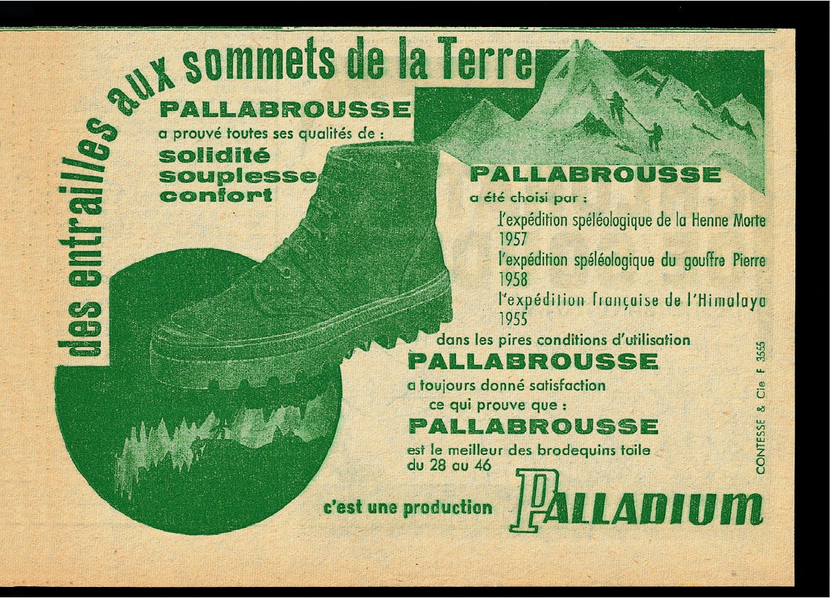パラディウムのシューズ製造の始まりは1947年。もともと航空機用のタイヤを製造する会社として創業したパラディウムは、フランス軍の要望を受け、ラバーソールブーツの製造をスタートしました。