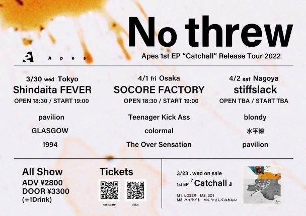 Apes 1st E.P.「Catchall」Release party“No threw”