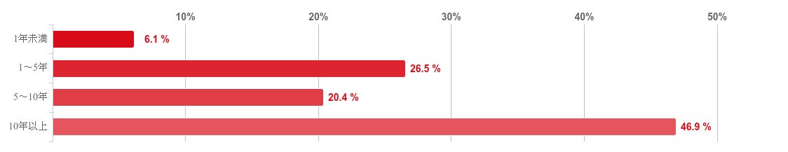 「10年以上」が46.9%と最も多く、約5割を占めた。
