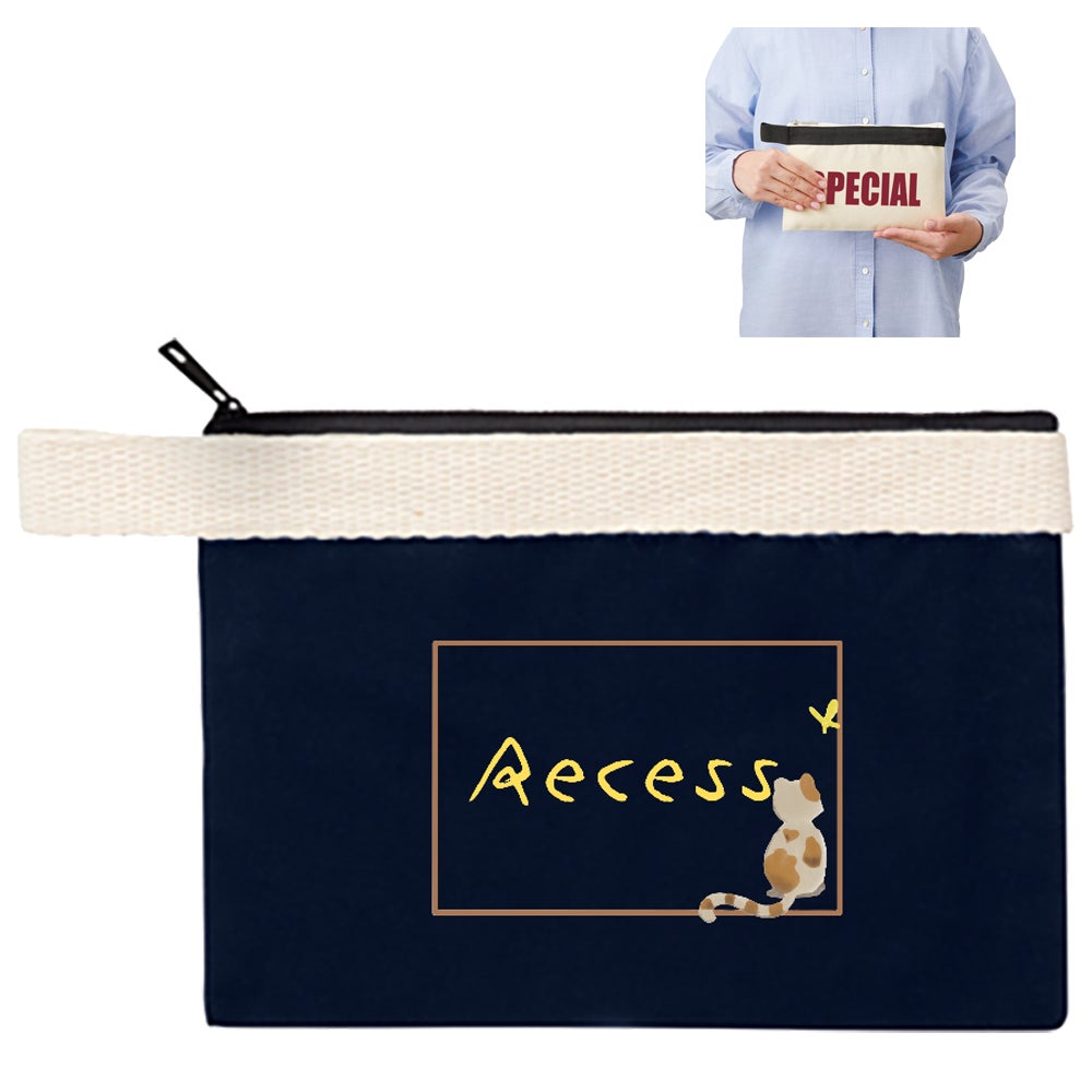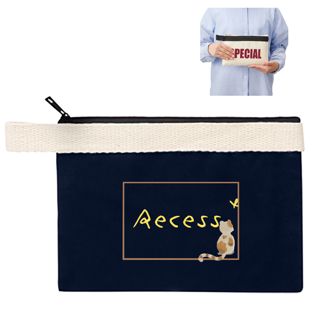 オリジナルプリントのUP-Tから、ストラップベルトがアクセントのキャンバスポーチが登場しました。ストラップ付なので持ち運びしやすく、一般的なのポーチとは一味違うおしゃれさのあるアイテムです。マチなしタイプで薄型なので、様々なタイプのバッグに入れられます。
