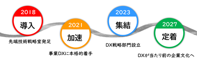 まず、2023年11月から全社員を対象にDXスキルを客観視できるアセスメントを実施し、社員一人ひとりに合わせた学習プログラムの提供を開始します。さらに、2024年からは、各部門に必要とされるDX人財像に沿ってカスタマイズされた学びの場を提供していきます。これにより、2027年度末までに累計で、全社DXリーダー150人、部門DX推進者300人、シチズン・ディベロッパー2,000人の育成を計画しています。