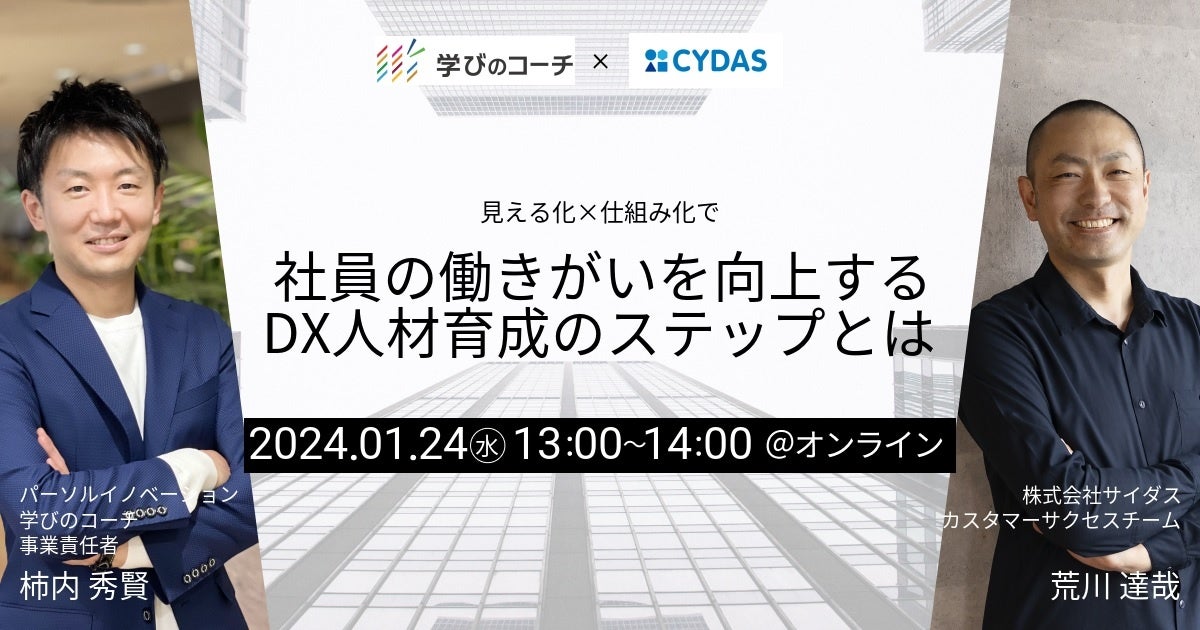 リスキリング支援サービス『学びのコーチ』を展開するパーソルイノベーションと、タレントマネジメントシステム『CYDAS』を展開するサイダスが共催オンラインセミナーを開催
