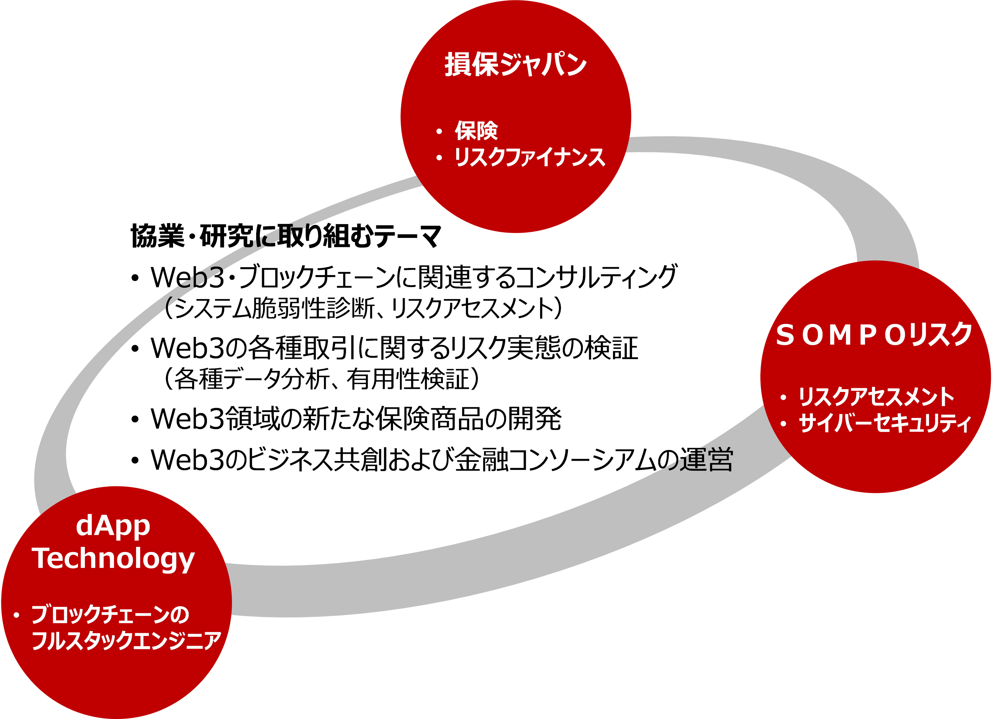 損害保険ジャパン、SOMPOリスクマネジメントおよびdApp Technologyの3社でWeb3時代を見据えた新商品やサービス開発の実現に向けた基本合意書を締結
