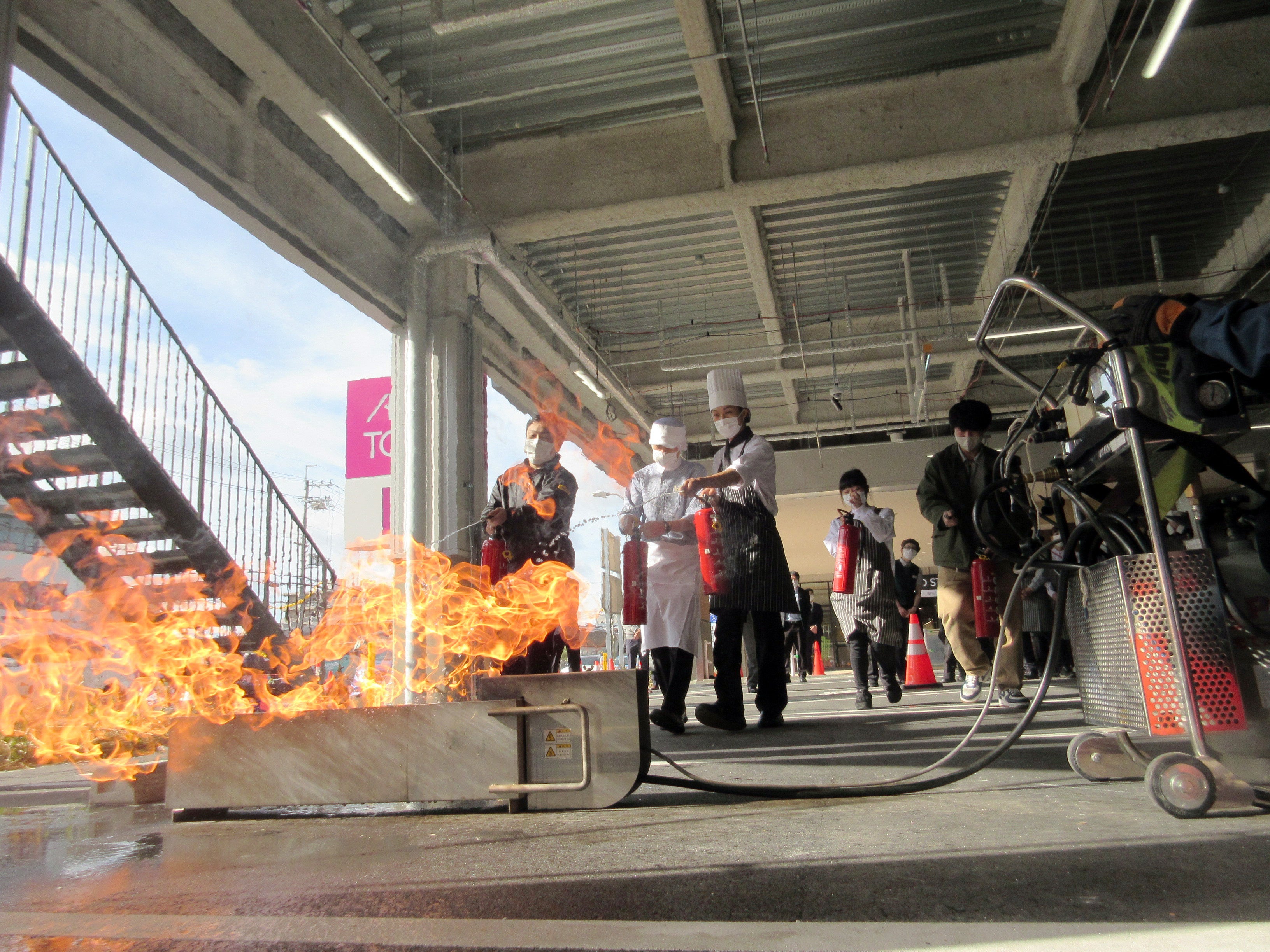 イオンタウン豊中庄内は12月2日(金)にグランドオープン予定の新規店舗で、オープン前に突発的な事案に対する対処方法を確認するとともに、警察・消防など関係機関の連携強化をめざします。