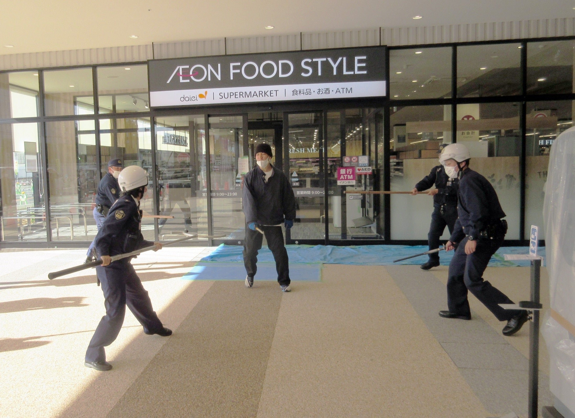内容:テロ対策訓練、消防・救助・救急活動の訓練、イオンタウン株式会社社員による消火訓練ほか