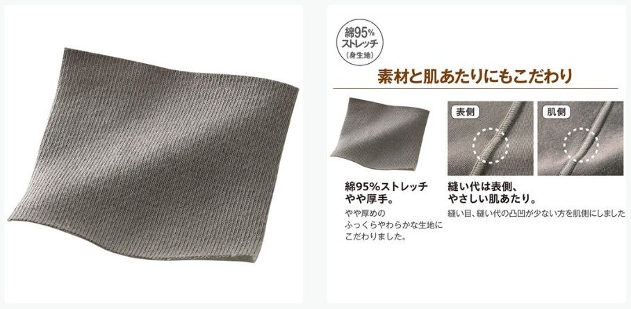 大人世代のお悩みである「お肉のはみ出し」を解決するために開発したショーツです。セシールのショーツは従来から、一般的なショーツと比較して深めの履き込み丈と、ヒップをすっぽり覆う安心感のある着心地が特長ですが、近年お客様から「ヒップ下のお肉がはみ出る」「お腹まわりがはみ出る」「もっとすっぽり覆ってほしい」というご要望が増加。こうしたお客様の年齢や体型変化に対応するため、お腹もヒップもさらにすっぽり深く包み込む設計を目指しました。