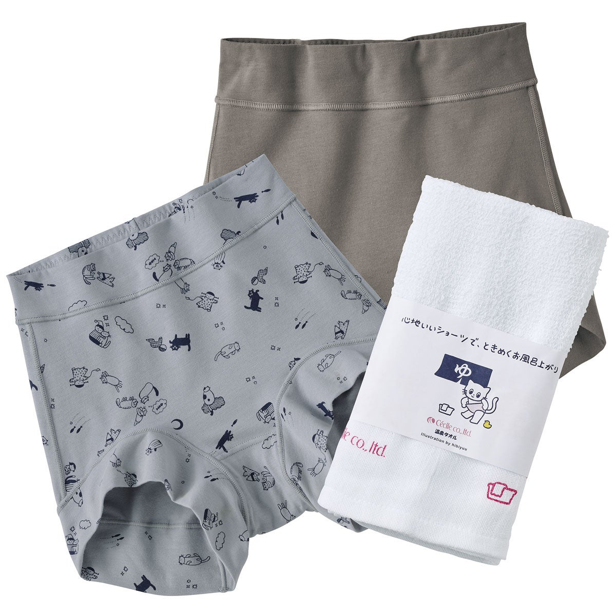 すっぽり深々と包み込むショーツを多くのお客様にご好評いただき、ありがとうございます。お客様から「新しい柄を増やしてほしい」というご要望を多数いただいたことを受け、イラストレーター・hibiyuu(ヒビユウ)さんにセシールの新ブランドスローガン「心地いいに、ときめく。」をテーマとした可愛らしいデザインを依頼いたしました。履き心地や機能性だけでなく、身につけるたびに心が弾むようなデザインの楽しさも兼ね備えたショーツと温泉タオルで、「心地いいに、ときめく」新年をお迎えいただけますよう願っています。