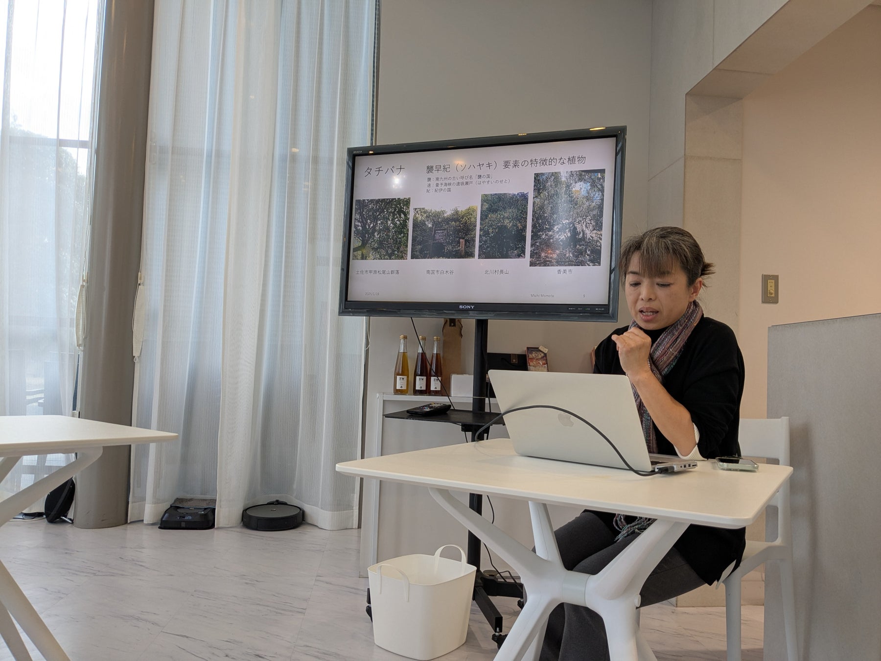 一般的なユズの特徴やその利用方法などの話から始まり、DNA解析に基づいた在来柑橘の起源や派生についての講義がありました。また、渡来人や修験道の修行僧、平家の落人の移動とともに日本国内にユズが伝播したという諸説や、山梨県も縁のある「富嶽三十六景」の葛飾北斎が病に倒れた際にユズを利用した薬により回復したという昔の利用方法についても紹介されました。