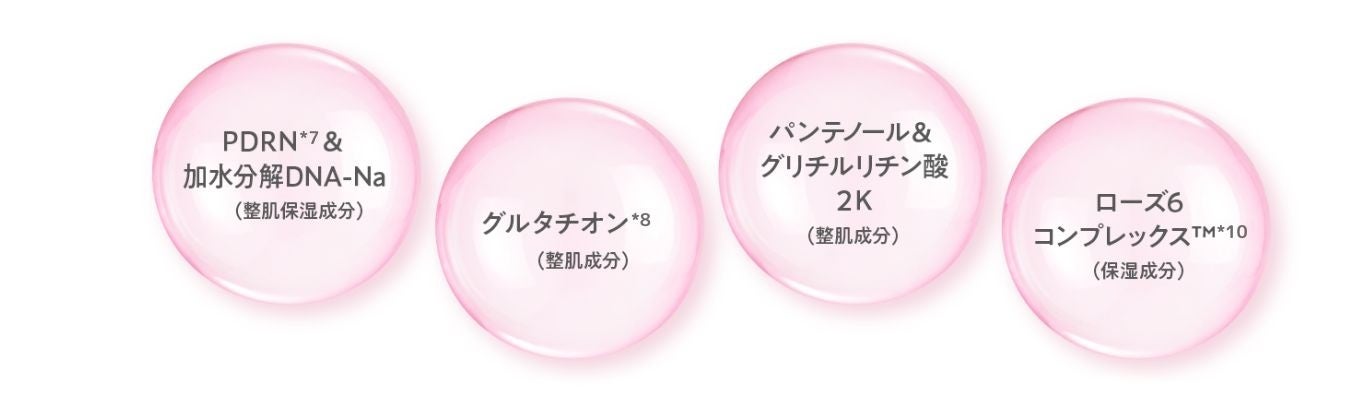 *10 ダマスクバラ花水、センチフォリアバラ花水、カニナバラ果実エキス、ハイブリッドローズ花エキス、モスカータバラ葉エキス、カニナバラ花エキス(すべて保湿成分)