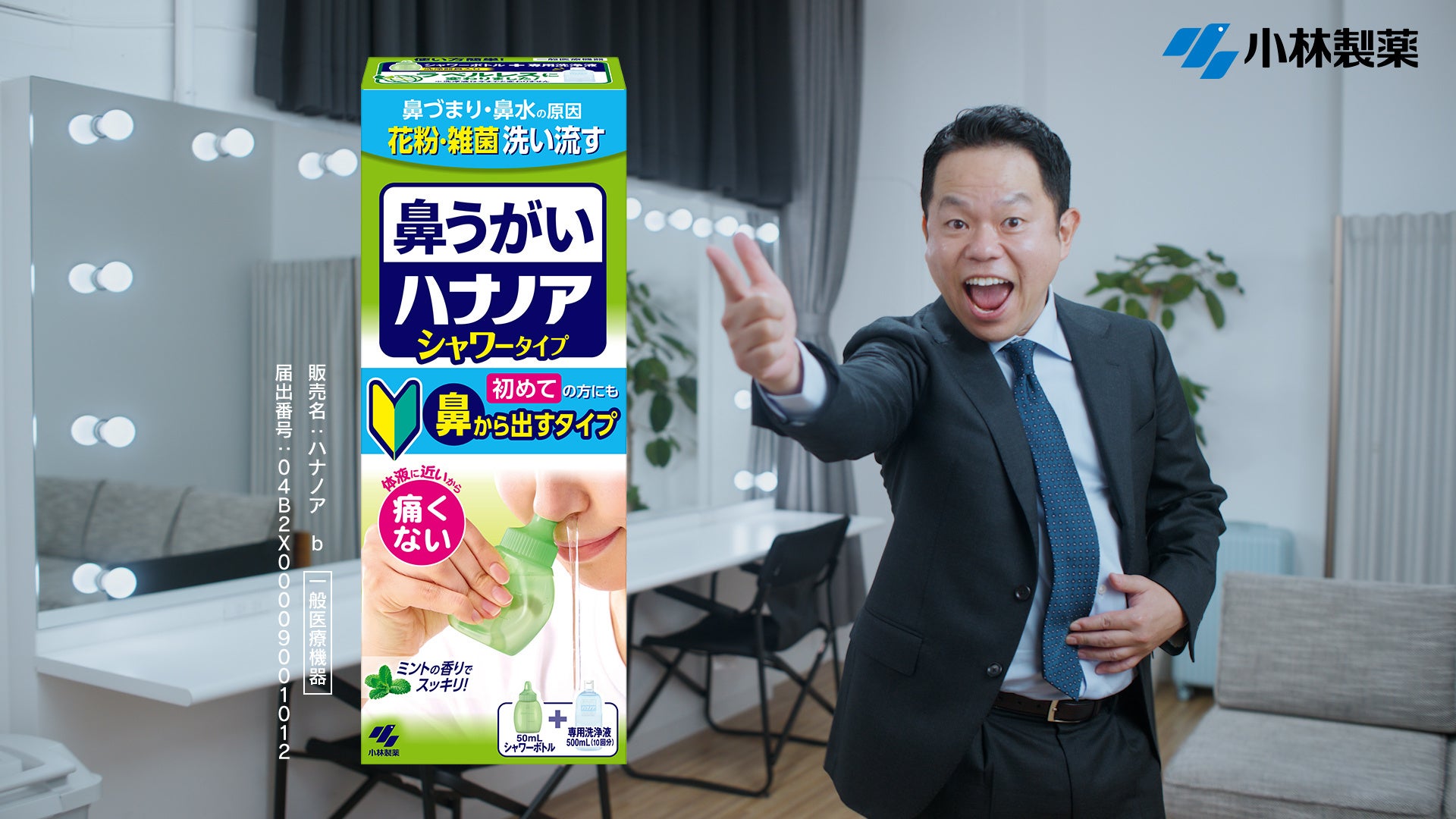 ブランドの認知を決定的にしたのは、今田耕司さんの起用です。2020年に公開したCMは、実際にハナノアを使っているリアルな姿をCMに使用し、絶妙な表情で鼻の穴から勢いよく液体を出す様がSNSで爆発的な反響を呼びました。この演出の狙いは、単なるインパクト重視ではなく、鼻うがいに対する「痛そう」「難しそう」という先入観を払拭するためでした。シュールな面白さで大きな話題を呼んだCMでしたが、同時に、それまで馴染みの薄かった鼻うがいの存在を広く知っていただく契機となりました。今田さんが真剣に実演する姿を通じて、「痛くない」というメッセージを生活者に届けられたことで、鼻うがいに対する安心感の醸成に成功しました。