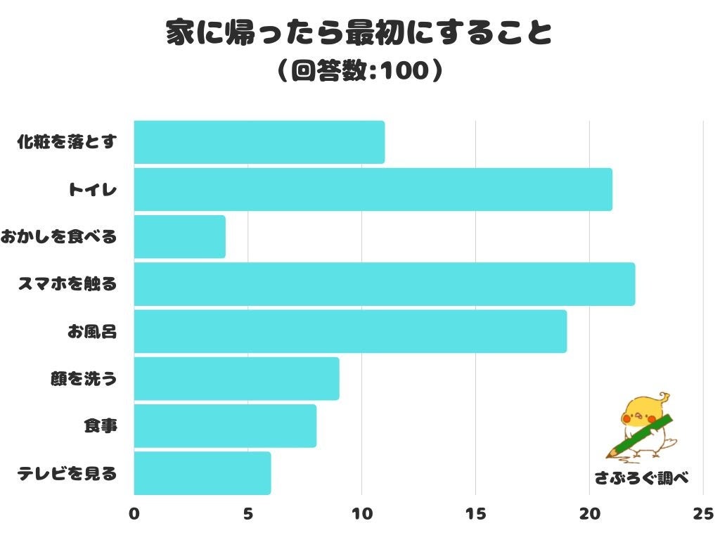 家に帰ったらスマホなどを触ったりなど、一旦落ち着きたいという人が多いようです。