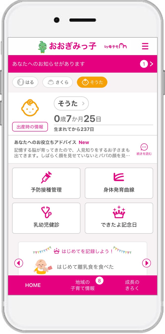 沖縄県大宜味村に採用された『おおぎみっ子』は、スマートフォン・タブレット端末・PCに対応したサービスで、妊産婦と子どもの健康データの記録・管理や予防接種のスケジュール管理、出産・育児に関するアドバイスの提供、離れた地域に住む祖父母など家族との共有機能や、村が配信する地域の情報をお知らせするなど、育児や仕事に忙しい母親や父親を助けてくれる便利な機能が充実しています。