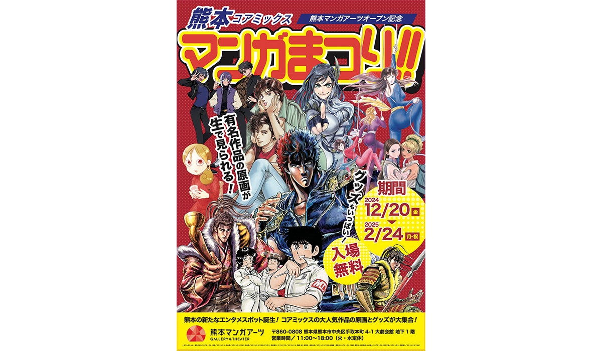 マンガ出版社・株式会社コアミックスは、マンガをテーマにしたアートギャラリー「熊本マンガアーツ」を、12月20日(金)に熊本市中心市街地の大劇会館(熊本県熊本市中央区手取本町4-1)地下1階にてオープンいたします。