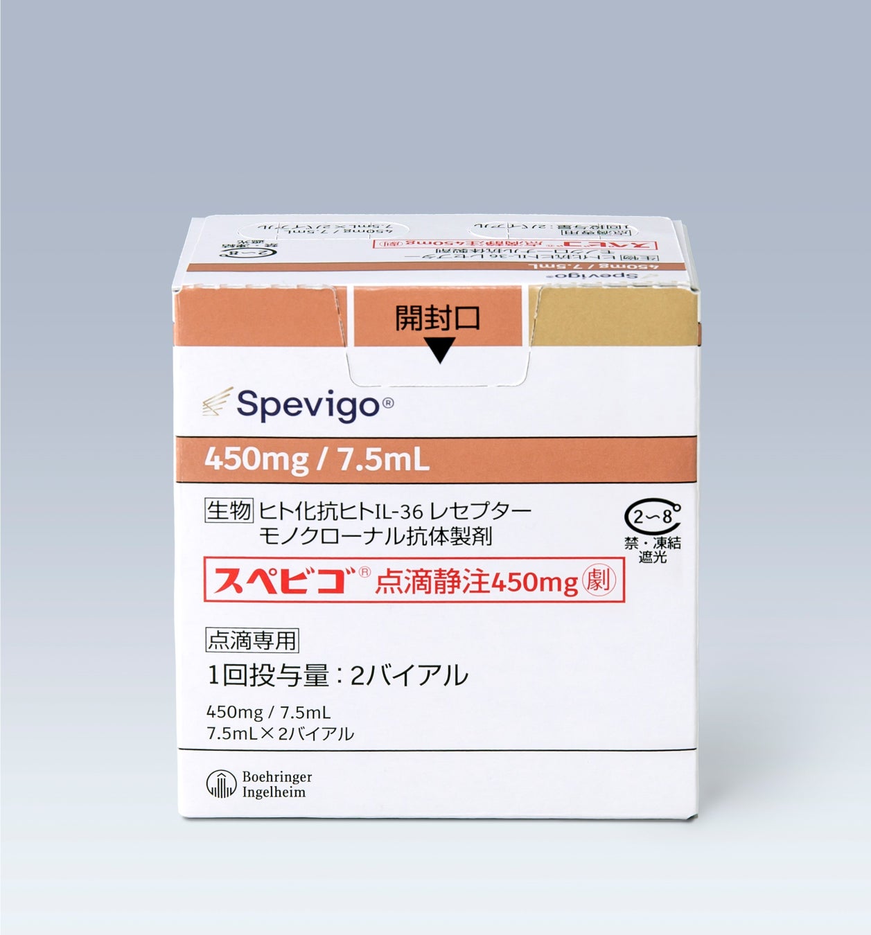 日本ベーリンガーインゲルハイム株式会社(本社:東京都品川区、代表取締役 医薬事業ユニット統括社長:ヤン・シュテファン・シェルド「以下、日本ベーリンガーインゲルハイム 」)は、膿疱性乾癬(GPP:[Generalized Pustular Psoriasis])における急性症状の改善の効能・効果で薬価収載された抗IL-36Rモノクローナル抗体「スペビゴ®点滴静注450mg」(一般名:スペソリマブ(遺伝子組換え)、以下スペビゴ®)を本日、日本において発売したことをお知らせします。