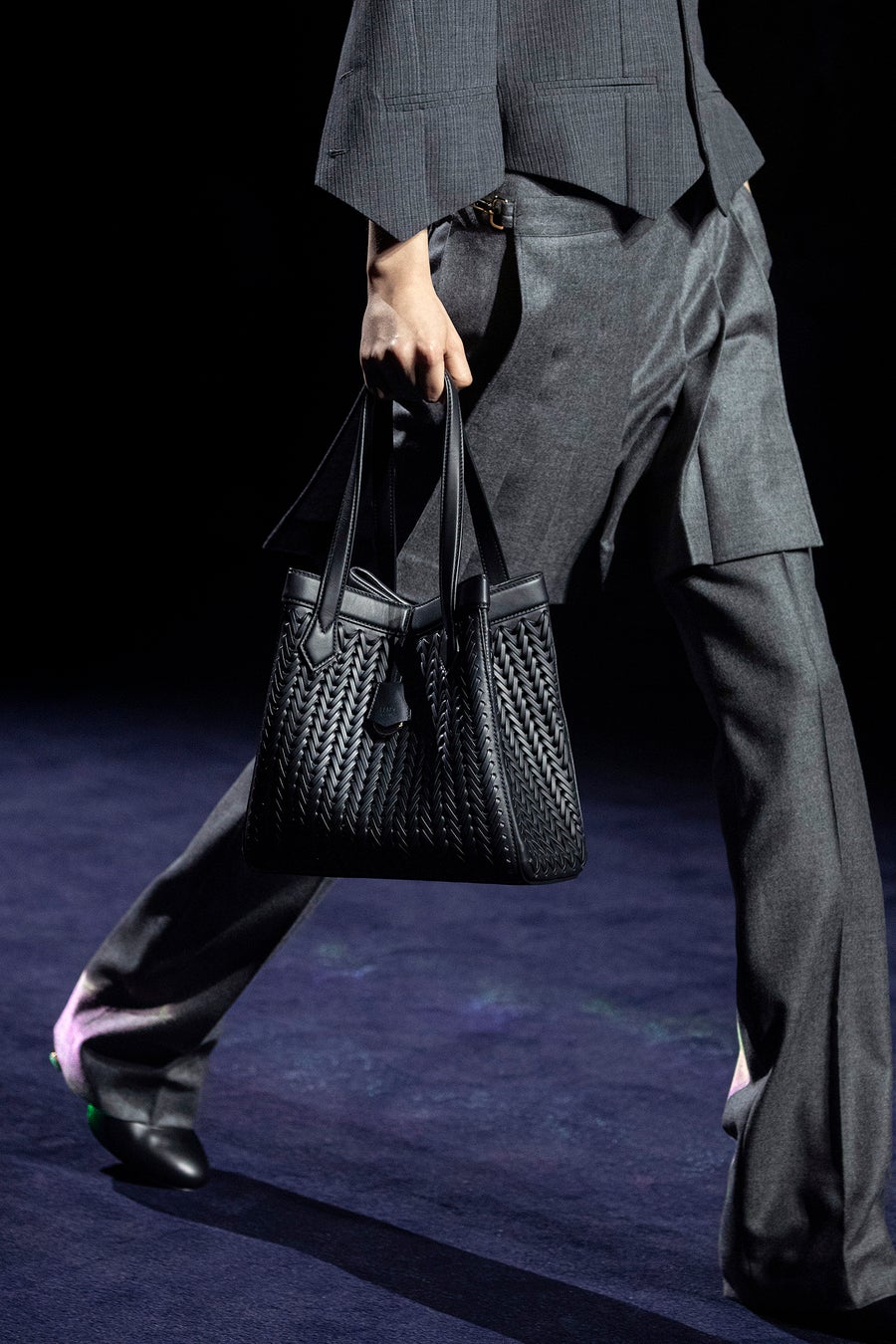 アクセサリーおよびメンズウェアのアーティスティック ディレクター シルヴィア・フェンディ(Silvia Venturini Fendi)は バケットバッグとトートバッグというふたつのシルエットに姿を変える特徴的なシェイプをデザインし、メゾンが誇る多様な感覚に敬意を表します。フェンディ2023年秋冬 ウィメンズコレクションの主役である「FENDI Origami」バッグがシーズンの魅力をエフォートレスに表現しています。