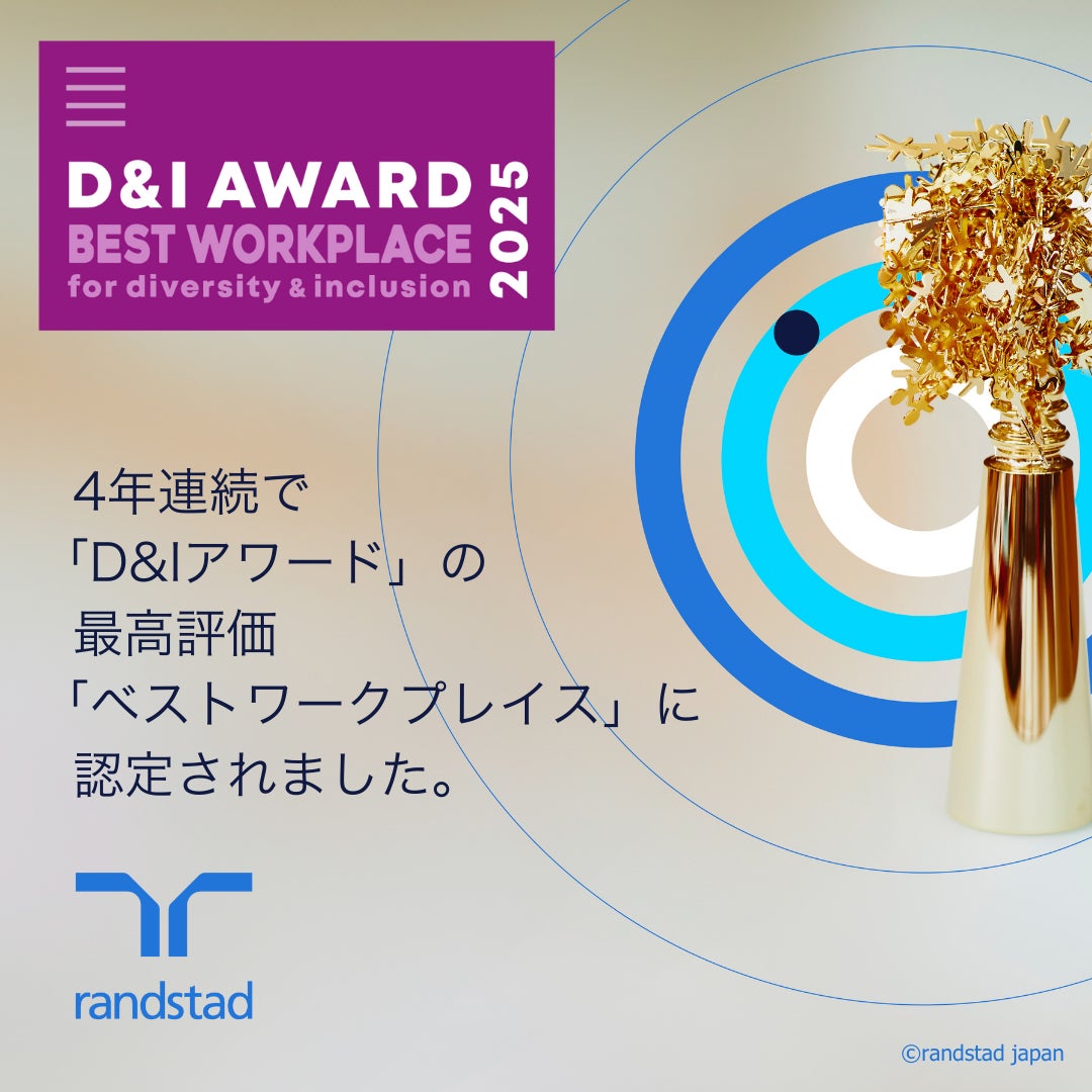 総合人材サービスを提供するランスタッド株式会社(本社:東京都千代田区 代表取締役会長兼CEO 道上 淳之介、代表取締役社長 猿谷哲)は、株式会社JobRainbowが発表した「D&Iアワード2025」において、最高評価の「ベストワークプレイス」に認定されました。ダイバーシティ&インクルージョン(D&I)を推進する多岐にわたる取り組みが評価されたもので、4年連続の受賞となります。