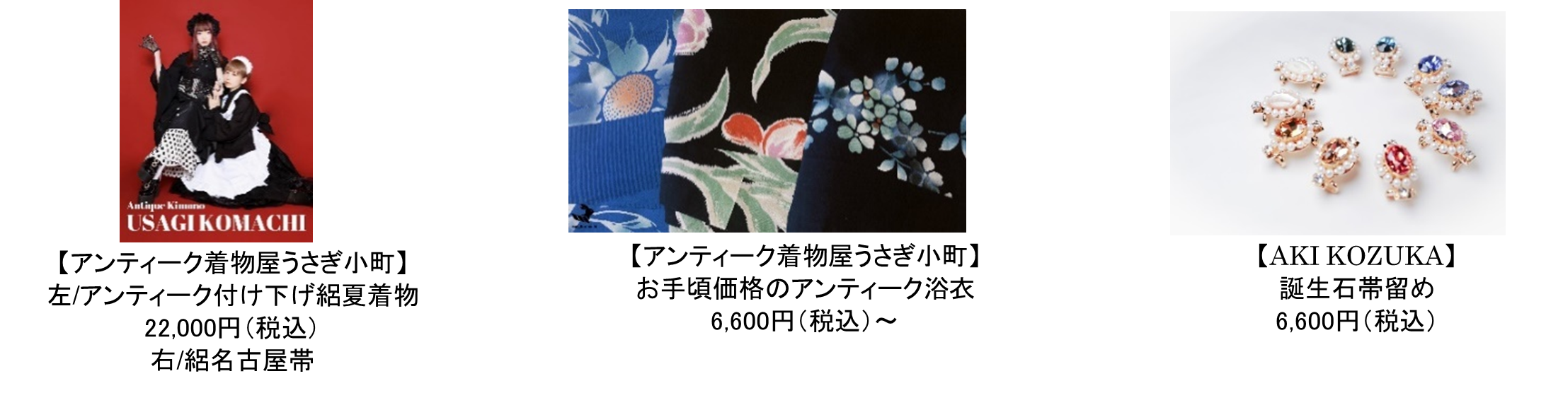 そのほかにも、「アンティーク着物屋うさぎ小町」、「ν:iroca」、「大塚呉服店」、「京都 きもの京小町」、「MIKI SAKURA」など注目の浴衣ショップが続々オープンいたします。