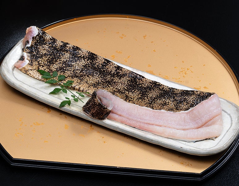 豊洲市場に活で入荷する国産のうつぼを使い、塩干専門店の“築地日進”が仕込みました。