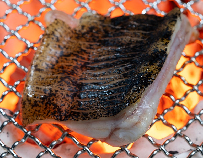 炭火で焼くと脂がじわっと出てきます。口に纏わりつくねっとりとしたコラーゲン、旨み、そして塩気にお酒がすすみます。