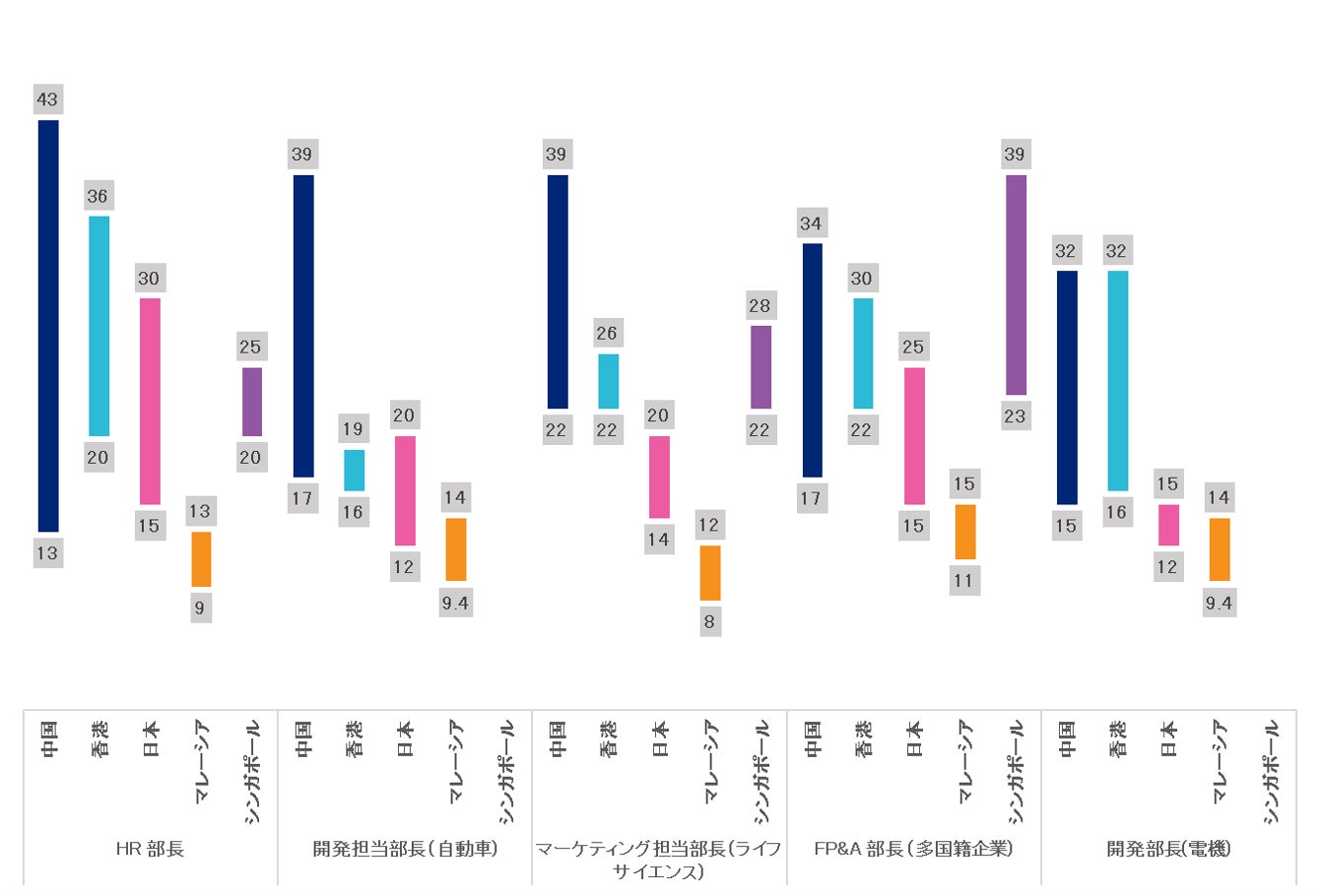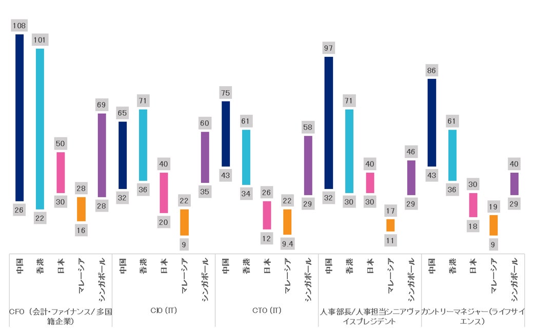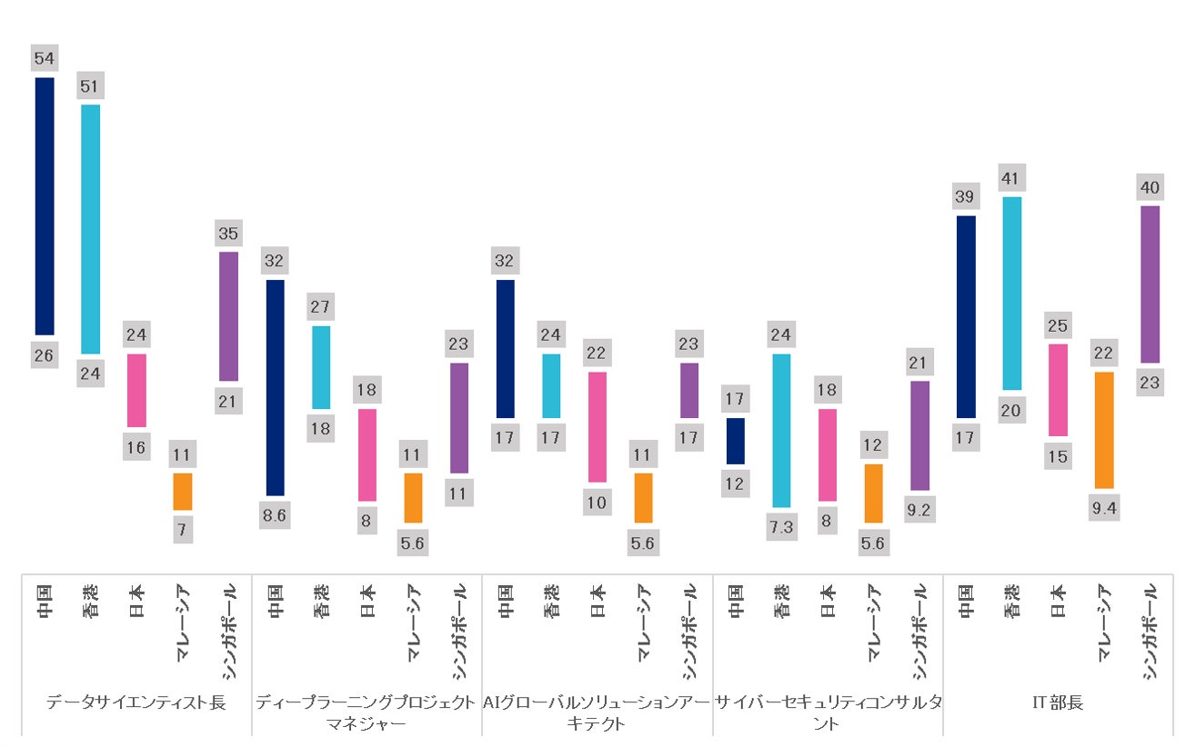 トップIT人材や役員レベルなど、ハイスキル人材の給与においては中国、香港、シンガポールの給与が日本を上回るケースが多くみられます。