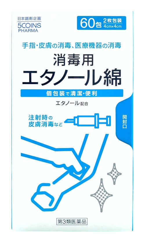 日本調剤のOTC医薬品シリーズ「5COINS PHARMA」で、消毒用エタノール綿「エレファワイパーE」を新発売