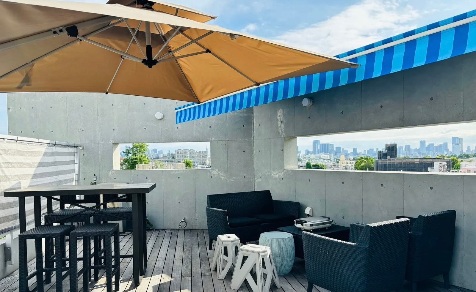屋上テラスでBBQもできる、屋外と室内のいいとこどりスペース