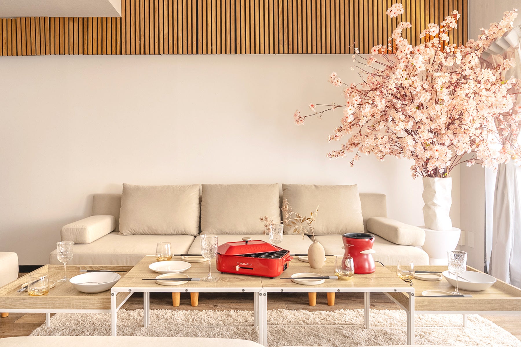3、4月の夜は冷え込むため、外でお花見をした後の二次会会場としてもご利用いただけます。寒暖差を気にせず、プロジェクターやキッチンを活用した自由度の高い会が楽しめます。