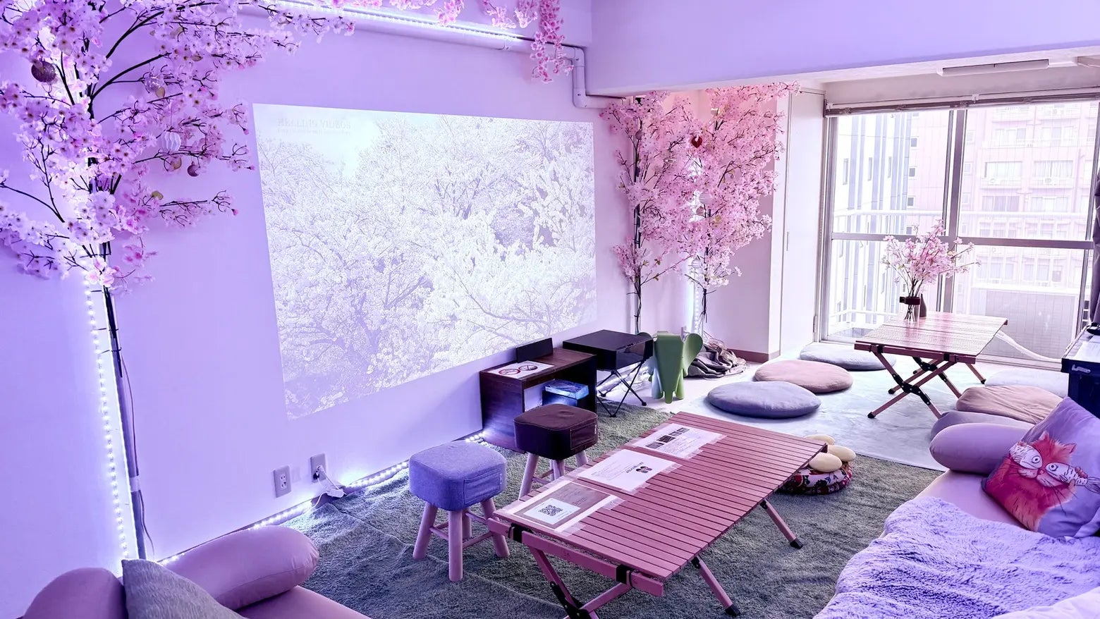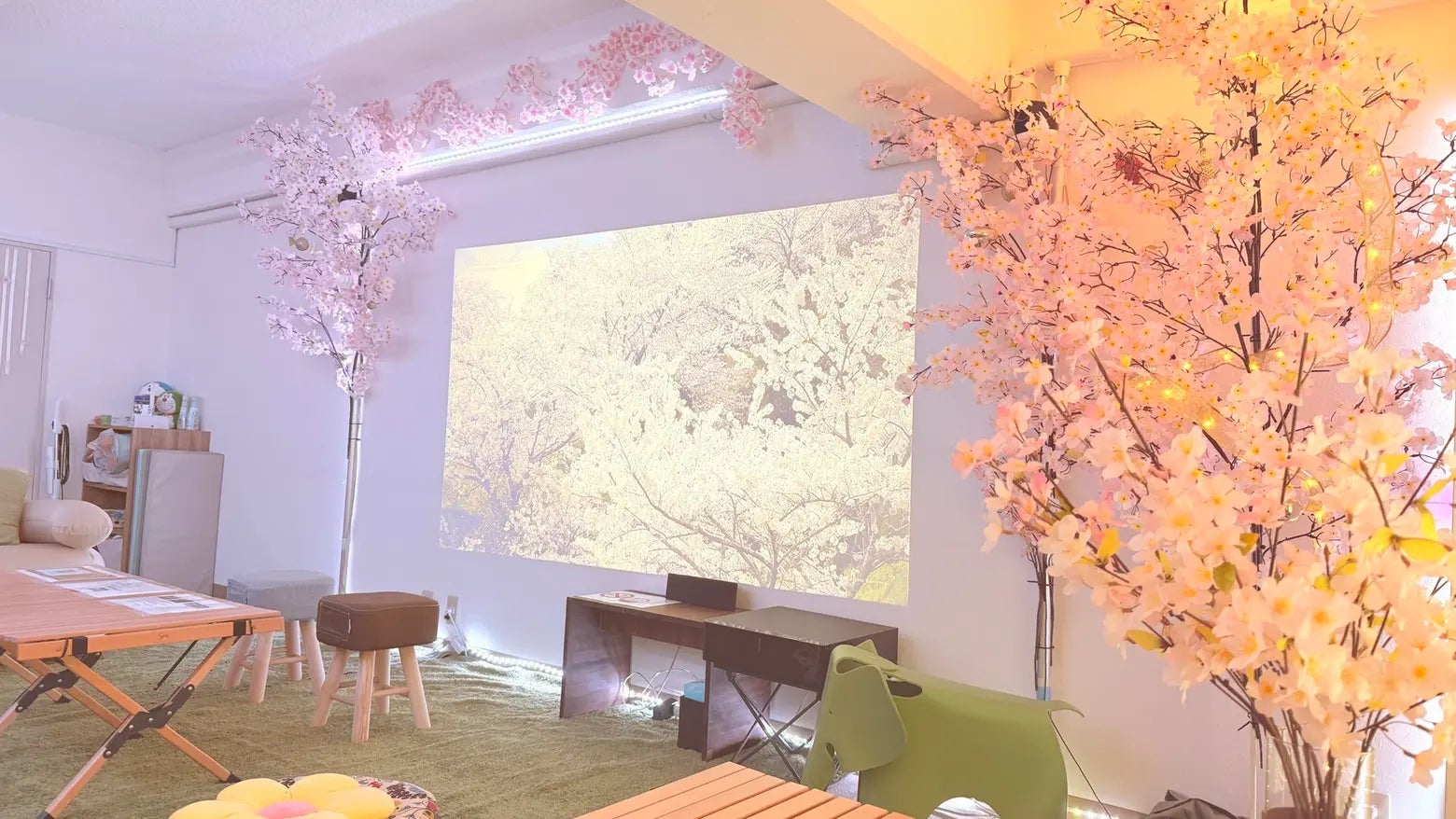 110インチのプロジェクター付き!推し活しながら室内でお花見気分