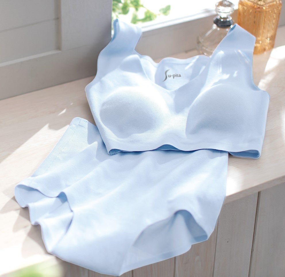 「ひんやり綿混メッシュのSu-pitaシリーズ」は、累計販売数54万枚を突破した(※)、素肌のような着心地が大人気なSu-pitaシリーズより新登場した、綿混メッシュ素材のインナーアイテム。※2022年4月時点